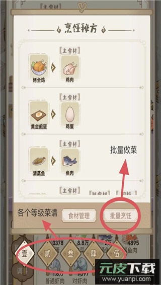 进入客栈后厨的烹饪秘方界面,即可进行批量烹饪操作。