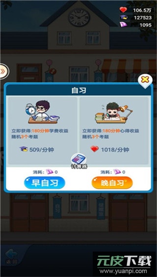 早自习:从主界面进入走廊,点击自习室即可参与。每日拥有一次免费机会,完成早自习可立即获得三小时收益,后续也可消耗钻石增加自习次数。