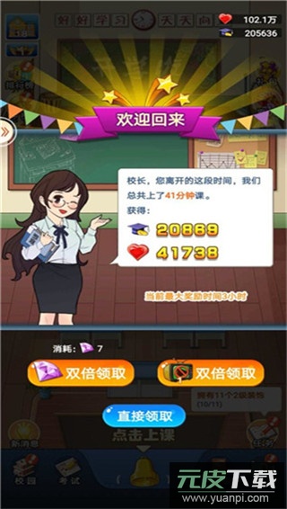 挂机收益:离线后游戏自动累积资源,上线即可领取。若对收益数额不满意,可选择观看广告或使用钻石换取双倍奖励。收益越高,所需钻石也越多。挂机时长存在限制,例如一级校董可累积三小时收益,通过提升校董等级可以延长该时间。