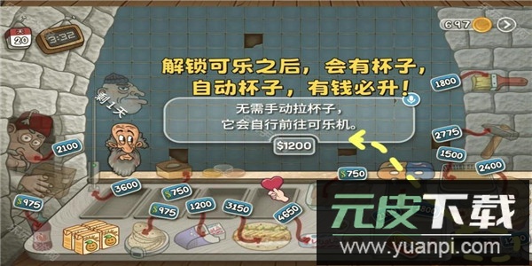 12、无需手动取杯,杯子会自动移动到可乐机下方。解锁可乐后会出现杯子和自动取杯机选项,后者是值得投资的升级。