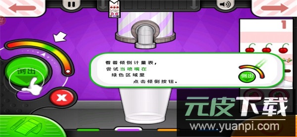 注意观察倾倒计量表,尽量在指针处于绿色区域时点击倾倒按钮;