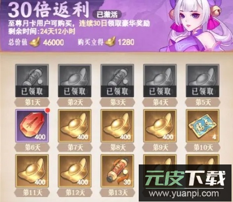 ①基金礼包:奖励可持续领取一个月,即便较晚购买,亦可补领之前阶段的奖励。