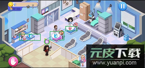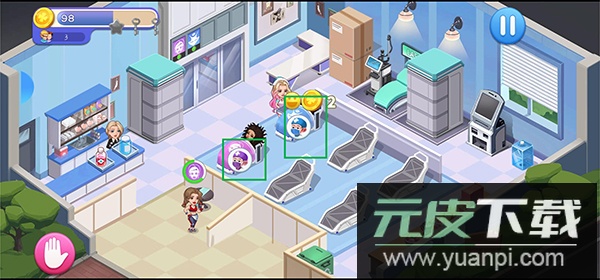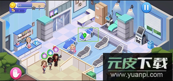 1、核心玩法是经营医院,通过雇佣医护人员与提供诊疗服务来维持运营;