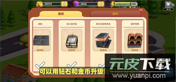 5、升级功能:玩家可以使用金币升级菜品品质、解锁更多操作台;到游戏后期,可以同时管理数十个烹饪工具与加工位。