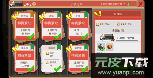 1. 小镇汽车订单:通常同时出现多个订单,分为常规订单与特殊订单两类。常规订单要求固定的物品,交付后获得既定金币与繁荣度。特殊订单所需物品种类一致但具体物品与数量可变,交付不同品质与数量的物品会显著影响最终收益。例如,饲料类特殊订单若交付高品质物品组合,所得金币与繁荣度将远高于交付普通物品。每日特殊订单数量有限,可对比后选择收益最高的进行交付;不想要的订单可以拒绝,但会减少当日特殊订单总数。全部特殊订单处理完毕后,当日将只刷新常规订单。