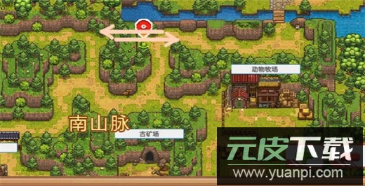 一条位于动物牧场西北角,即古矿场正上方,可左右穿行。