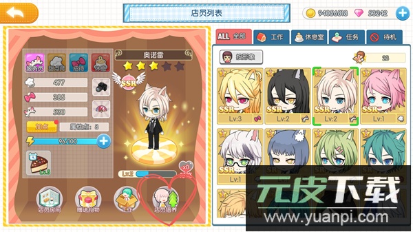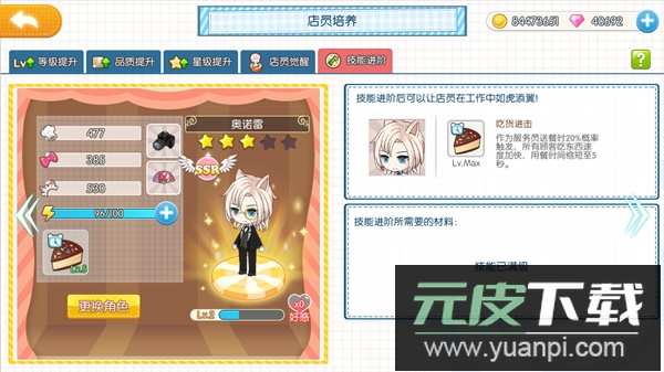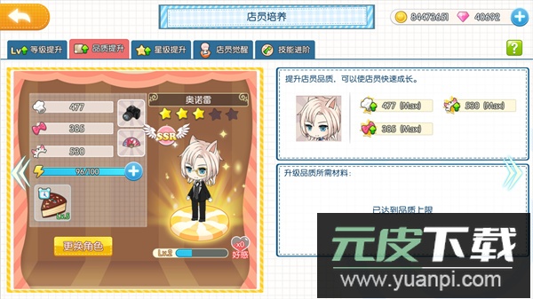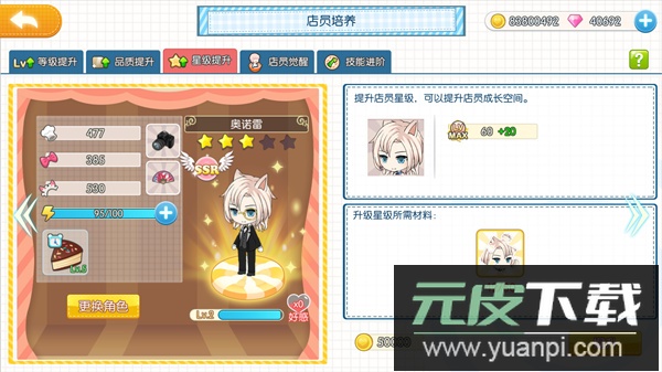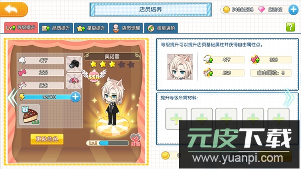 等级提升:可通过使用经验道具或消耗其他店员来提升等级;系统提供一键添加材料功能,会自动选用珍贵度较低的N级店员,避免误操作消耗高稀有度角色。