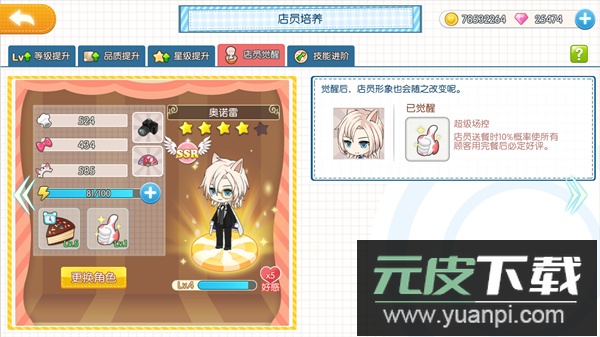 品质突破:使用特定道具“蝴蝶结”可提升店员品质,品质提高后其基础属性与能力将显著增强,最终可进阶为闪耀的金牌店员。