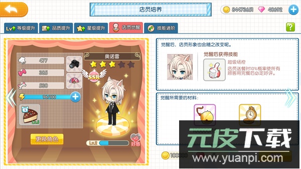 觉醒系统:SSR稀有度的店员可进行觉醒,需消耗通用道具“魔法铃铛”及角色专属道具;专属道具通过完成该角色事件获取,觉醒后将解锁新技能,并更新角色立绘与模型外观。