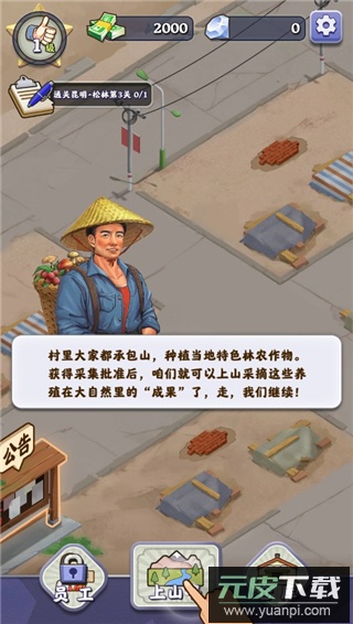 1. 进入游戏后,首先需要前往山中采集山货;