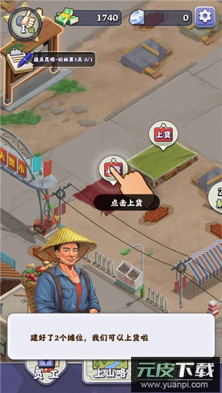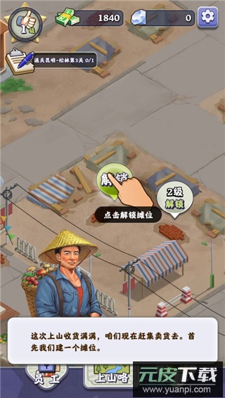 5. 前往市场需先解锁摊位才能出售山货;解锁后点击上货,等待顾客购买即可完成交易。