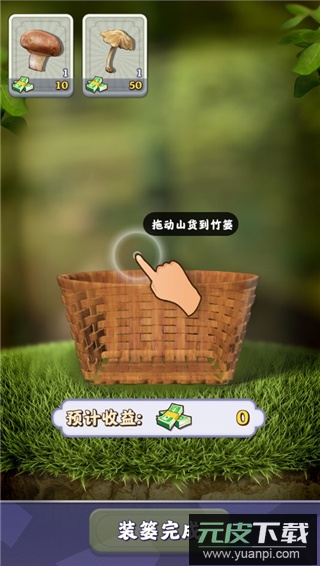 4. 收工后将山货拖入背篓,系统会显示预计收益;