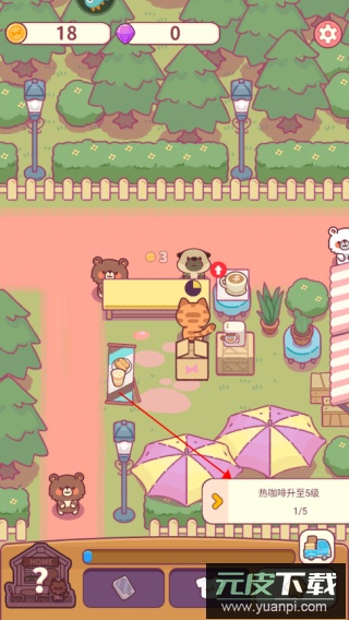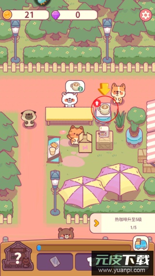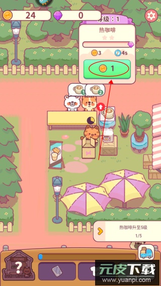 2、查看任务说明,掌握完成步骤,比如升级热咖啡,点击咖啡旁边的升级图标;