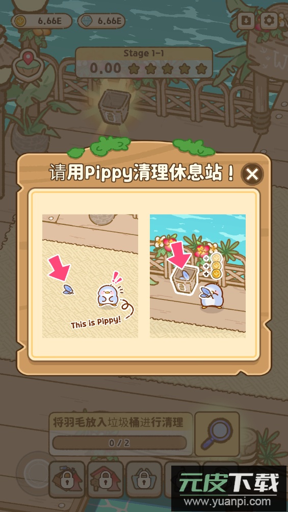 2、拖动画面中的操作轮盘,控制角色Pippy清理休息站。