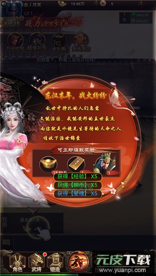 4、尊享VIP15全部顶级特权,囊括海量专属福利,在三国世界中畅行无阻;