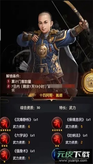 培养技巧方面,十四阿哥的获取门槛较高,需要在指定时间内完成一定额度的充值,且光环升级主要依赖知己皮肤、门客皮肤和门客数量。整体而言,该门客更适合中高投入玩家或皮肤收集数量较多的玩家。