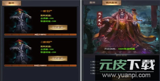 联盟升至五级时,将开启僵尸古洞玩法。在此系统中,可通过消耗联盟财富炼化僵尸,从而提升僵尸副本首领的血量上限,增加副本可获取的总贡献值。