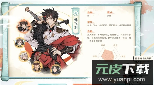 剧情初始会赠送韩飞羽等弟子,其中韩飞羽为橙色品质剑修,其天命词条具备增伤加速效果,值得作为前期核心培养;