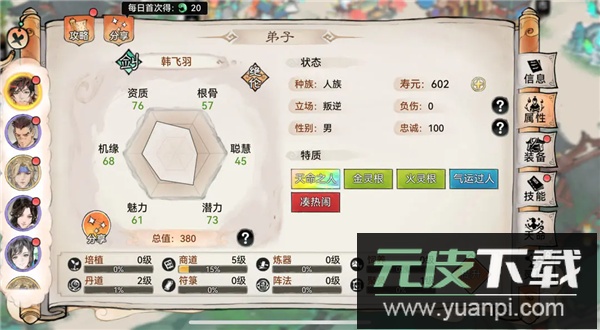 2、角色养成维度深入,可通过多种途径提升弟子属性、习得新技能并获取资源;