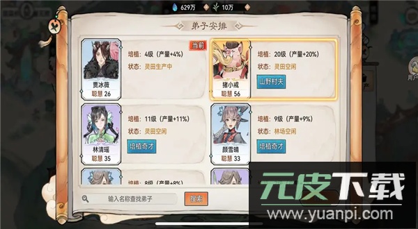 前期可安排普通弟子负责资源生产,后期逐步替换为奇才弟子。