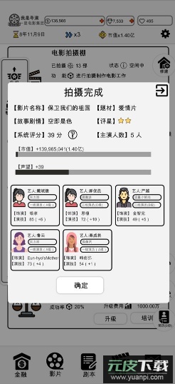 在这款休闲模拟游戏中,你将化身为一名导演,体验经营电影人生的乐趣。游戏已实现免广告获取奖励,无需观看广告即可直接领取资源。你可以自由规划影片项目,招募各类天赋各异的演员,并挑选心仪的剧本与他们合作,最终打造出属于自己的银幕大作。