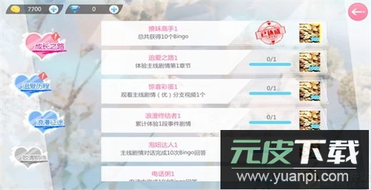 大厅上方的“成就”栏目内含多项任务,完成指定剧情即可领取金币与钻石。