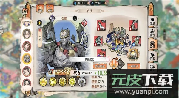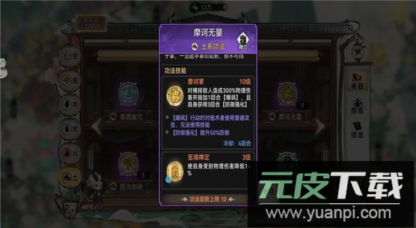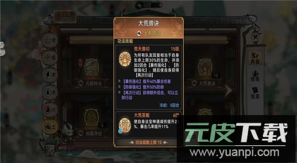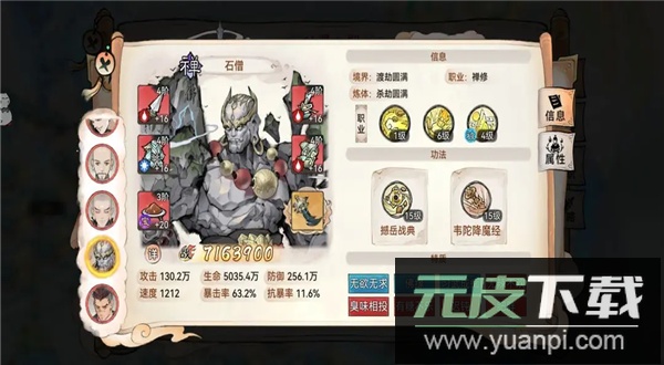 功法推荐:禅那经搭配大荒;该组合适合投入较多的玩家,配合石僧天命被动可在行动后叠加防御,并实现双次行动,加快战斗节奏。