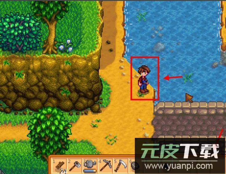 1、首先走到可垂钓的水边,从背包里选中鱼竿准备。