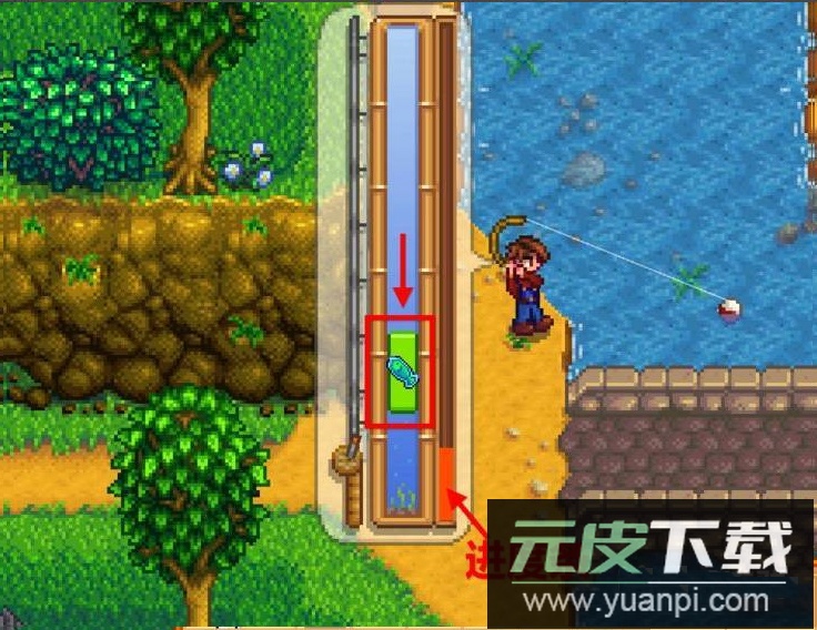 4、收线过程中,尽量让鱼儿保持在绿色移动条范围内,直到右侧进度条完全充满。