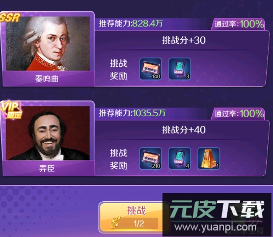 2.挑战成功不仅能领取奖励,还可累积挑战分数,积分达标即可解锁对应的音乐家宝箱。