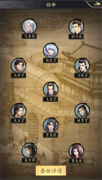 武将的魅力和内政属性影响委任效果;委任武将升级时建议对这两项属性进行加点。部分内政型武将的武技可提升自身内政与魅力,因此也可通过研习将任命武将的技能点满,以获得更高效率。