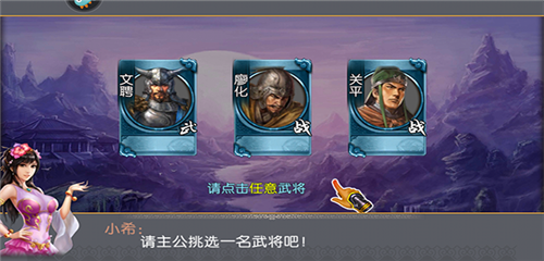 2、进入游戏主界面后,挑选一名初始武将开启首次讨伐征程;