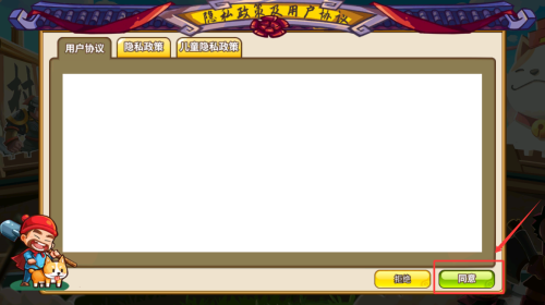 2、点击红色区域内的同意按钮,正式进入游戏界面。
