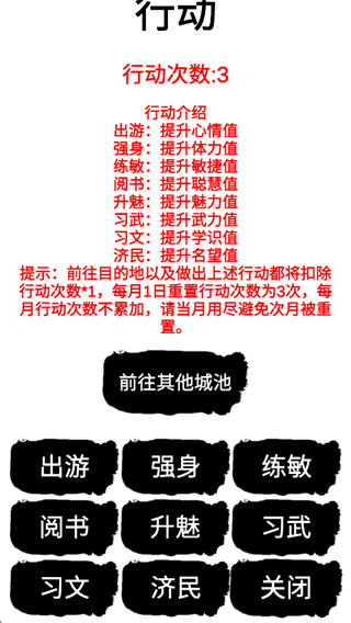 10、通过行动可提升角色对应的属性值,使角色逐步强大,从而在乱世中具备自保与争雄的能力。