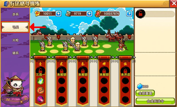 1、先选择对应兵种,可选兵种包含步兵、弓兵、火枪、骑兵;