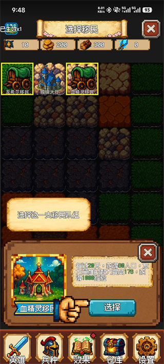 2、选择“血精灵移民”可带来持续收益:每20天获得80人口、英雄智力提升178点及1000经验,能显著加速英雄在中后期的成长。