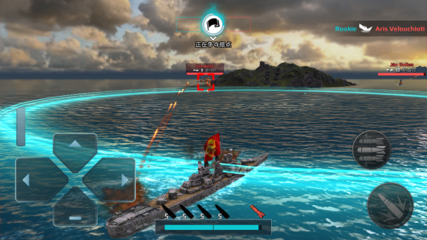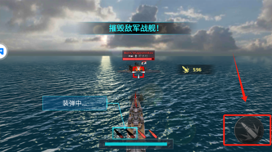 2、将战舰瞄准敌方目标,点击左下角按键即可开火攻击。