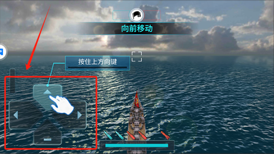 1、长按左侧按键可控制军舰移动方向,右侧按键则负责发射炮弹与鱼雷。
