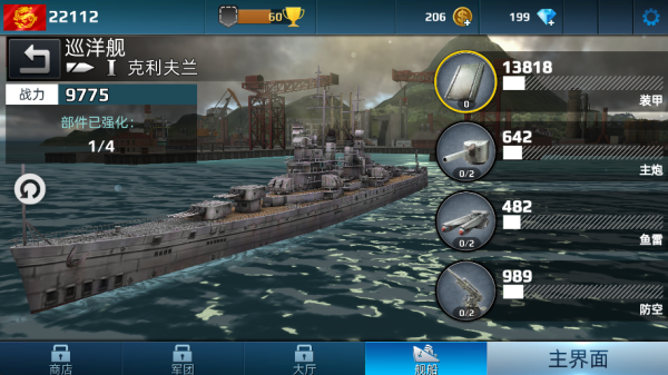 4、可利用获得的资源奖励升级战舰,提升其生命值、装甲强度及主炮攻击力。