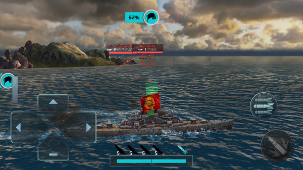 2、系统会自动锁定敌方目标,玩家只需调整视角;让战舰侧面对敌可发挥最大火力。