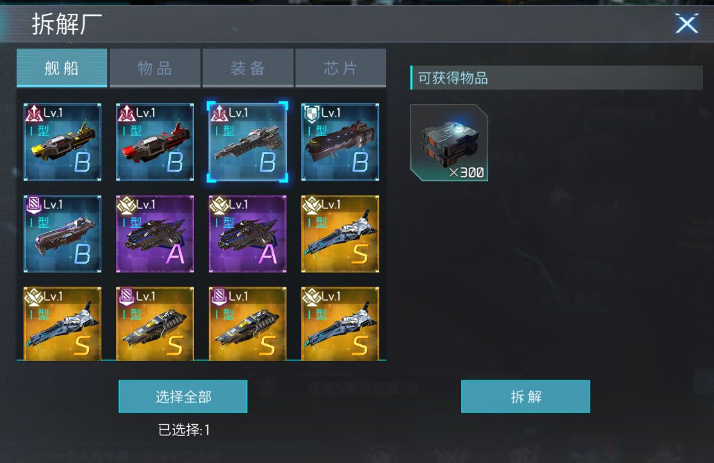 前期资源有限时,通常先培养A级舰船,后期再更换S级舰船;此时会用到拆解厂设施。请注意,舰船建造时消耗的图纸无法通过拆解返还。