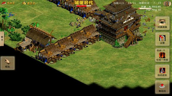 开辟新的果实采集区并建造城堡。至此,战局最艰难的阶段已经度过,后续发展不再有固定流程。注意合理调配资源,平衡采集食物与黄金的农民数量。