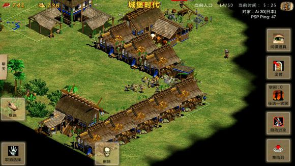 在封建时代继续增加农民数量,当人口达到13至15时,开始升级城堡时代。到达城堡时代后,选中金矿下方的住房,点击右下角的“删除”图标将其拆除。腾出空间后,让采金农民在外围指定位置建造城堡。
