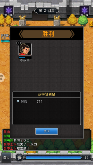 3、战斗胜利后可获得金币与人物经验,持续升级以提升整体实力。