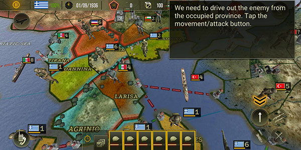 3、选中队伍之后,界面右下角会出现箭头按钮,点击即可给队伍下达移动或者进攻的指令;