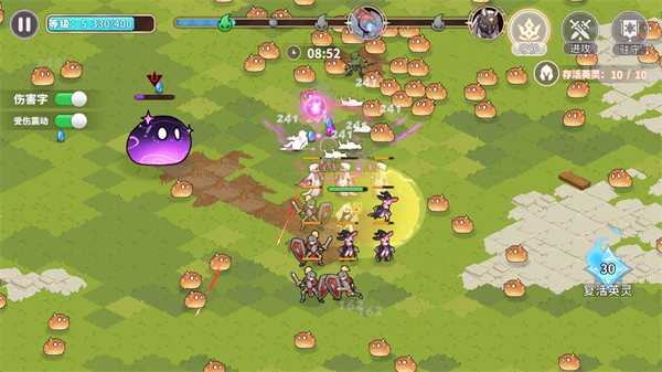 3. 战斗开始后,左侧虚拟摇杆控制指挥官移动,角色会自动攻击视野内的怪物。