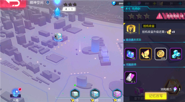 精神空间内的每个情绪节点由众多数据节点组成。每次成功改写记忆,你不仅能窥见记忆的片段,还能获取相应奖励。