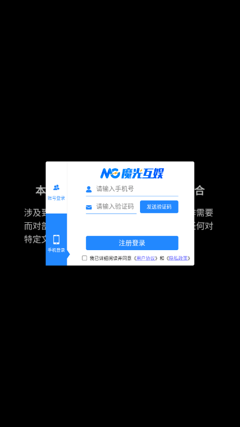 3.在登录界面选择使用已注册的账号或手机号码完成登录。