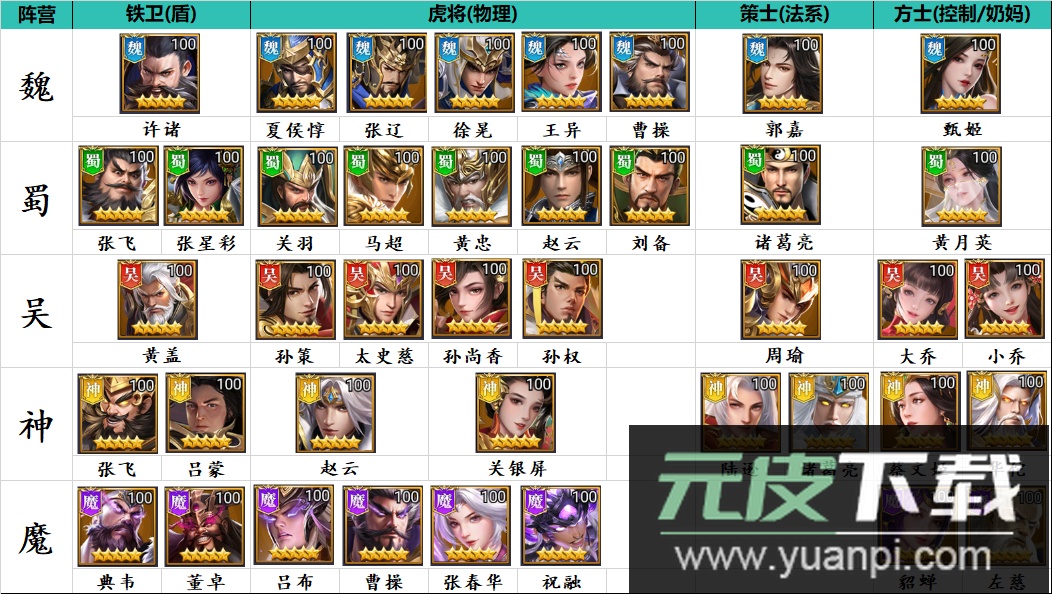 6. 黄盖、张飞、许褚:前期优秀的防御型武将。推荐技能:自愈、坚毅、天命等增强防御、气血与闪避的技能,肉盾角色通用此类搭配;