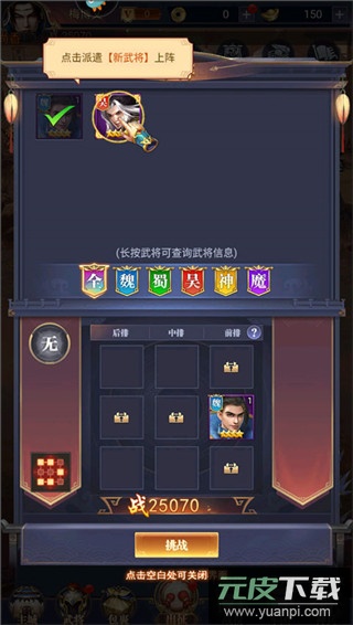 5、在布阵界面,派遣你已获得的武将上阵作战;